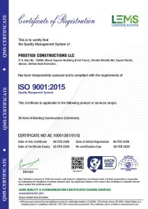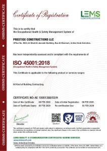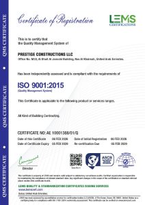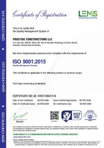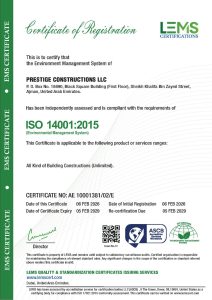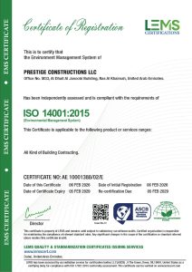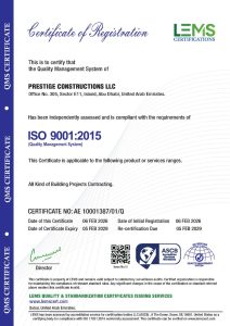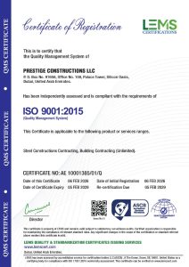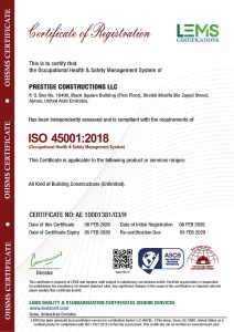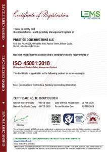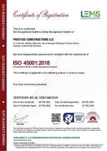At Prestige Constructions, employee safety, healthy working environment, qualified and professional workforce, industry’s best practices and globally acceptable and applicable standards are paramount. We are compliant with various ISO certifications and several other Safety certifications.